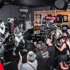 It was time for the headlining bands and starting things off was perennial Las Vegas favorites Motograter . With their head to toe tribal body paint and hard rocking sound,Motograter is the type of band that fits right into Scary Monsters Music! We cover them each and everytime they pass through Vegas! This California based band was formed in 1995 and seems to never stop touring. Ivan Moody of Five Finger Death Punch was an early singer for Motograter on the bands biggest hit "Down" (prior to present vocalist James Legion) but on this night we were all treated to an amazing performance of that song as Aaron Nordstrom of Gemini Syndrome joined Motograter onstage for "Down". Vocalist James Legion as always had complete control over the crowd, commanding them to get in the pit and party their asses off! If you want to see a band that always delivers an amazing show then Motograter is the band one to not miss.