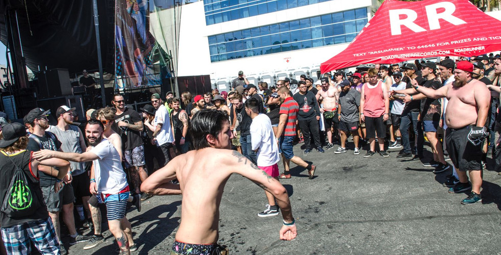 played out by the pool which was an odd setting for such a rebellious band. During The Ataris set singer Kristopher Roe jumped off the stage and dove into the pool, since the stage was nearly at the edge of the pool. The fans could not mosh with such a small space in front of the pool so the bands asked the fans to do something I am sure only happened on this stop - they asked them to whirlpool! The fans all got in the pool and started going in a circle creating a small whirlpool.