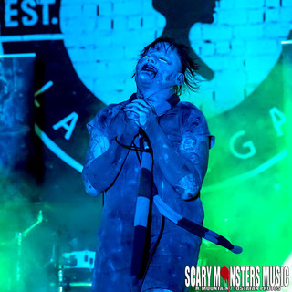 KISSING CANDICE hail all the way from Long Island, NY, and have a sound that is metal, hardcore, industrial and just plain badass. This is my kind of band - a horror themed band with punishing songs, dark and very frightful looking onstage. Kissing Candice is a band that baffles me as to why they are not HUGE, this band is the total package, and they remind me alot of the great local band d.I.M. Kissing Candice's stage show includes tons of smoke, with twisting and twirling lights flashing out through the heavily fogged stage. Frontman Joey Simpson wears the creepiest old man looking masks with bloody clothing, and he is an amazing frontman who did his best to work the small crowd who did turn out on a chilly Monday night at the Beauty Bar. Smaller crowd or not the band delivered their usual shock and awe type of show and gave those who did come out something to remember. For more on the band and to order thier newest release Safe Word check out their website HERE.