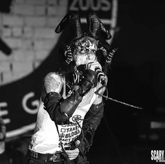 JYRKI 69 along with MGT and support from Demon Scissors and The Nocturnal Affair made a stop during thier West Coast Tour at the Beauty Bar in Las Vegas, on a cool night outdoors and under a gloomy night sky. Opening the show was local Vegas band Demon Scissors, a horror themed talented band that always sound amazing when they play. With elaborate costumes and glow in the dark painted bodies Demon Scissors are one of the more visual bands you will seeing playing around Vegas. The Nocturnal Affair, also local to Las Vegas was next, a another very talented dark / goth themed band.