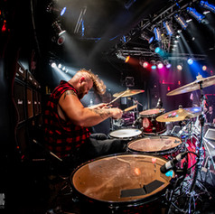 Next to for the night was Honor Amongst Thieves, a local band that I have become quite familiar with over the past couple of years, and is Jonathan Salas on vocals, Adam "Trucker" Edwards and Chris Iorio on guitars, CJ Bills on bass, and Jonathan Hartman on drums. I received my introduction to them at Las Rageous 2017 where they had won the honor of playing on the second stage via fan vote through KOMP 92.3. They were thrust into the spotlight once again a couple months later at the Scars and Stripes festival, and more recently by being invited to play Rocklahoma 2018. They are a Las Vegas local, hard rock band with a very loyal group of fans, some of whom travel for hours from neighboring Arizona to attend every performance. They have one studio album to date, Element of Truth (2017), and are now taking a hiatus in order to complete their second. They have a very melodic modern rock sound, intermingled with some heavy shredding, and screaming vocals. They handle the stage like seasoned veterans and exude a ton of energy and charisma. Vocalist Salas has a gritty tone and can really belt out the screams. He can also slow it down and has a rich baritone (check out his cover of Sound of Silence on YouTube)! Chris and Adam trade off guitar riffs and entertain the crowd with their antics, from jumping around the stage, to sprawling on the floor. Chris was an original member of the Las Vegas hard rock band, Adelita's Way, and co-wrote their hit song, "Invincible" (which HAT covered just prior to finishing off the set with their latest single, "Death of Me"). Hartman was called upon by Code Red Riot to fill in on drums for the first leg of a recent tour, following the release of their debut album, but he is now back in the fold, thrashing the skins for HAT, and whipping his curly blonde locks to the beat of his drums. These guys are a phenomenal live act and play regularly at venues all over town. Hopefully, their hiatus won't be for long, as I never tire of seeing them perform. I'm really looking forward to hearing some new music from them as well! first leg of a recent tour, following the release of their debut album. He is now back in the fold, thrashing the skins for HAT, and whipping his curly blonde locks to the beat of his drums. These guys are a phenomenal live act and play regularly at venues all over town. Hopefully, their hiatus won't be for long, as I never tire of seeing them perform. I'm really looking forward to hearing some new music from them as well!