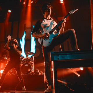 Headliners August Burns Red had a tough act to follow after Silverstein, but they showed that they were more than up for the challenge. They took to the stage to chants of “A-B-R!” with drummer and founding member Matt Greiner being the first out, climbing on top of his kit and throwing both hands in the air, horns up. They wasted no time, kicking things off with "Thirty and Seven", the opening track for