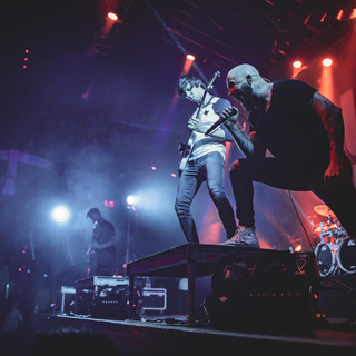 Opening the performance was Silent Planet, a metalcore group out of Azusa, Ca, who have three full studio albums along with two EPs. They are fronted by the only remaining original member, Garrett Russell, and are known for thought provoking lyrics that encompass topics such as war, psychology, and religion. Russell employs a variety of vocal techniques including heavy growls, high-pitched screams, and spoken word crescendos. This was my second time seeing them perform live, and they are quite good at what they do - technically sound metalcore with well-written lyrics, but I feel that the commentary between songs (Russell likes to explain what each song is about) kills some of the intensity that is built up during each s