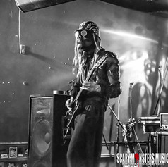 DRIFT is a hard rocking band from Los Angeles, and with a horror, shock look. The band members were dressed in everything from a creepy skeleton on guitar, to a drummer wearing a gas mask and helmet, a singer in a pilot's helmet, to the bass player also in a gas mask, flack jacket and helmet. Musically this band is really good and watching closely you could tell these are some pretty good musicians behind those masks. They quickly capture your attention and were a fun band to see.