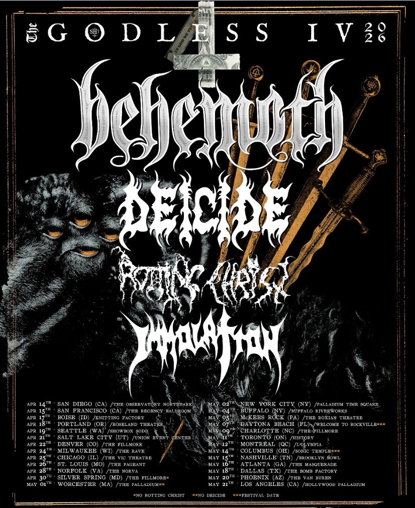 BEHEMOTH SPRING 2026 HEADLINE "THE GODLESS IV" TOUR FEATURES DEICIDE, ROTTING CHRIST, + IMMOLATION