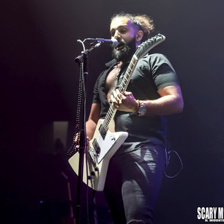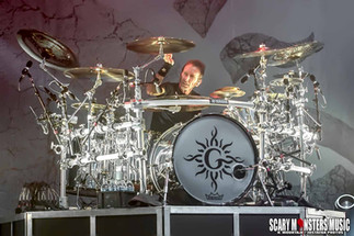 Finally it was time for GODSMACK. The lights went down and with a loud bang the curtain dropped to the ground as the band launched into “1000 HP” with fans screaming with excitement. With a blast of huge flames Vocalist Sully Erna and the band ( Sully Erna - lead vocals, rhythm guitar, percussion, Robbie Merrill - bass, Tony Rombola - lead guitar and the amazing Shannon Larkin - drums), started with a Godsmack classic, “Stay Away”, followed by one of the best, hard driving beats of any Godsmack song,
