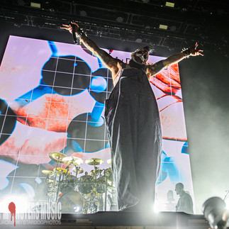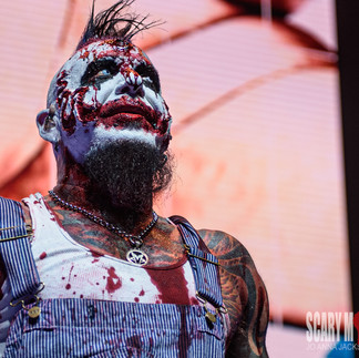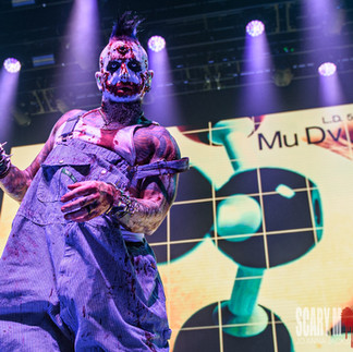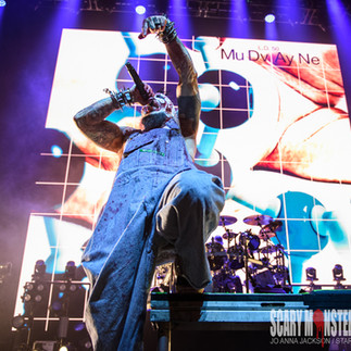 Mudvayne is celebrating the 25th Anniversary of their debut L.D. 50 on this US tour, and the set ran through collective of tracks from the album, making a brutal start with "Dig" and "Internal Primates Forever". Notably absent was guitarist Greg Tribbett (due to his wife's recent passing he is not on tour at this time), and Chad spoke on the founding guitarist's loss. He talked to the fans about how much it affected him, how Tribbett wanted them to go on - and with the love and support of them all, they are continuing, and the crowd showed nothing but love.