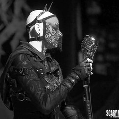 ANTANIA from Joshua Tree, opened the show, a duo is not for everybody - only the most hardcore extreme industrial fans will really get this act. They have a sound that is heavy "doom" bass, distortion, and evil screeching vocals from Kali Mortem, who onstage is a sight to see - she took to the stage dressed in all gothic black and a black mesh veil. The room shook to the brutal pounding bass, and the futuristic look and sound from Mortem, along with Dr Luna, wearing a devil looking mask with tall horns, made for a demonic assault on the senses. Halfway through their set Mortem removed the veil to reveal a bald head with a spiked headband in place, and as she sang into her chrome skull mic at times had similar vocalization to upcoming Psyclon Nine’s Nero Bellum. Antania totally held my attention their entire set, and I NEED to hear more. Listen to their song “God Complex" to get a taste of what this band is all about, but the real taste is in the intensity of their live show. Check out more on them at Linktree: Antania Official