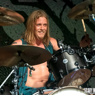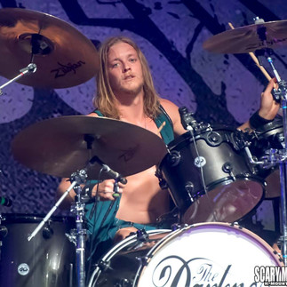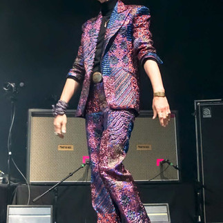notes, while brother Dan Hawkins really turned on the chops. Rock royalty Rufus “Tiger” Taylor (son of Roger Taylor and the godson of the late Taylor Hawkins) pounded the drums, and bass player Frankie Poullain, dressed in a purple sequins and a pair of cowboy boots rounded out the fashion